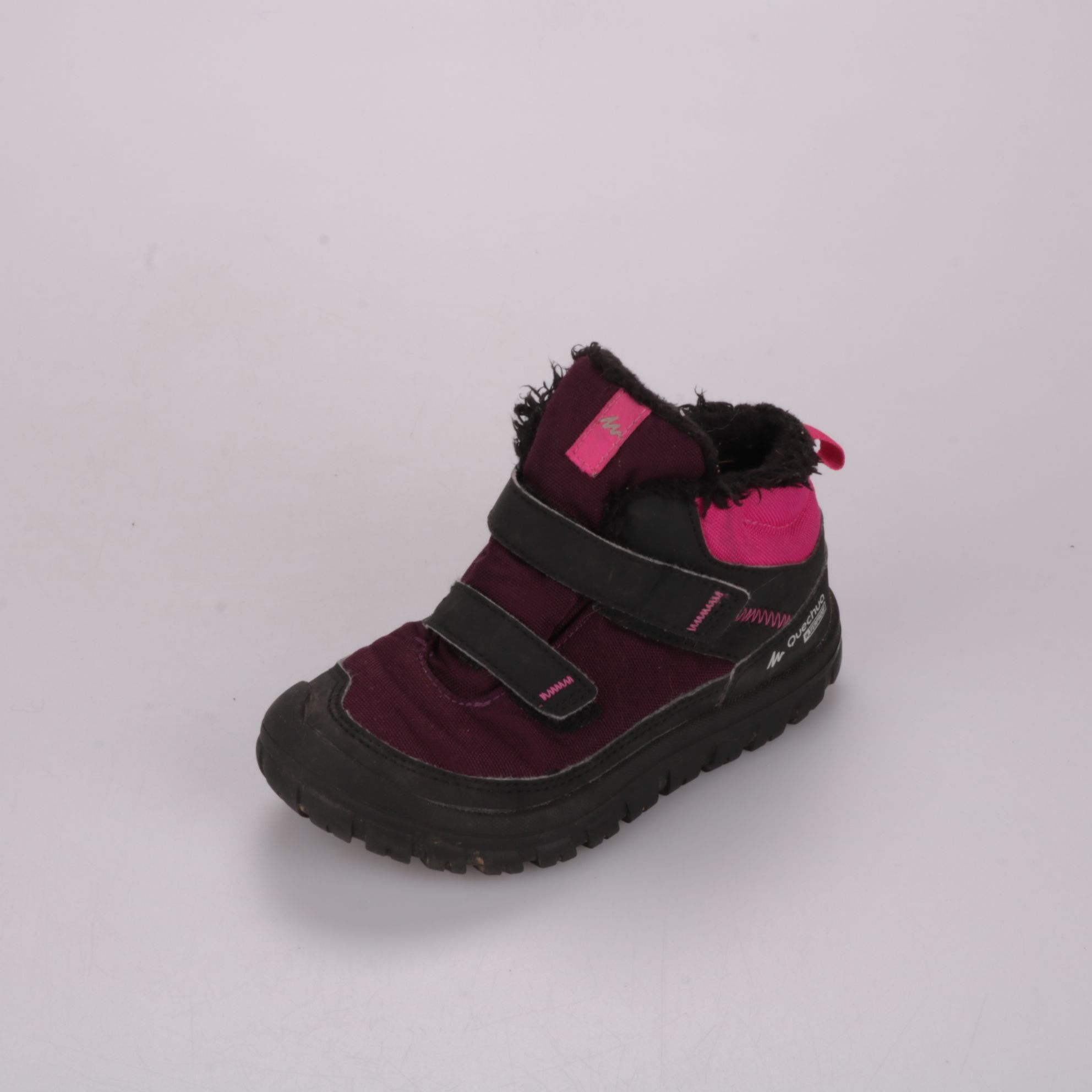 Детские ботинки Quechua с утеплённой подкладкой и застёжками на липучках. Подойдут для прогулок в прохладную и сырую погоду благодаря водоотталкивающему верху и высокой посадке. Практичное преимущество — быстро надеваются и хорошо фиксируют стопу.
