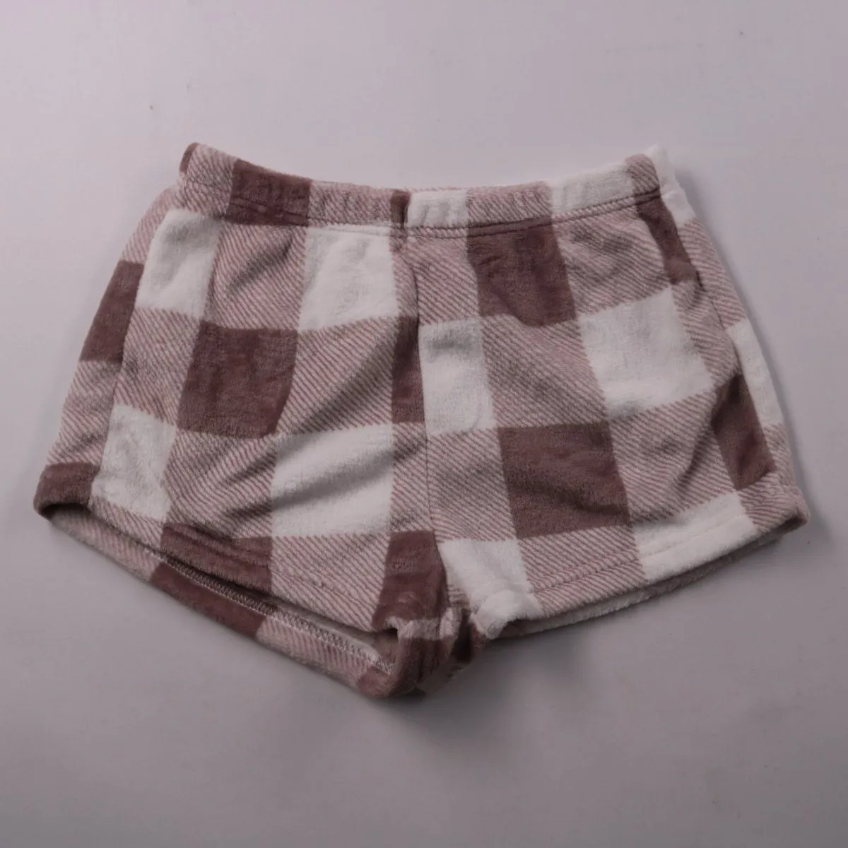 Короткие шорты в клетку из полиэстера с мягкой фактурой и эластичным поясом. Подойдут для дома, сна и отдыха в тёплом помещении. Материал быстро сохнет и не требует сложного ухода.