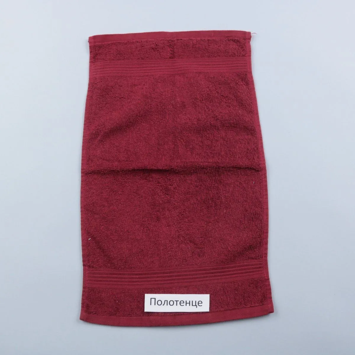 Махровое полотенце без указанного бренда, цвет бордовый. Подойдёт для ванной или кухни, удобно для ежедневного использования дома или на даче. Хорошо впитывает влагу и быстро сохнет.