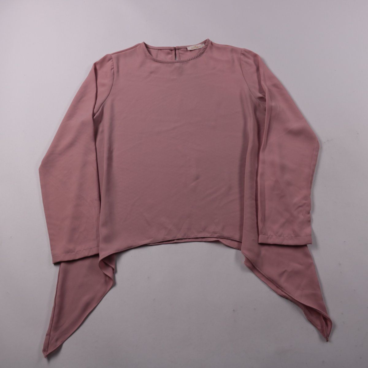Блузка Asiyan розового цвета с длинным рукавом и асимметричным низом. Подойдёт для повседневных образов и для офиса с брюками или юбкой. Лёгкая ткань хорошо драпируется и почти не мнётся.