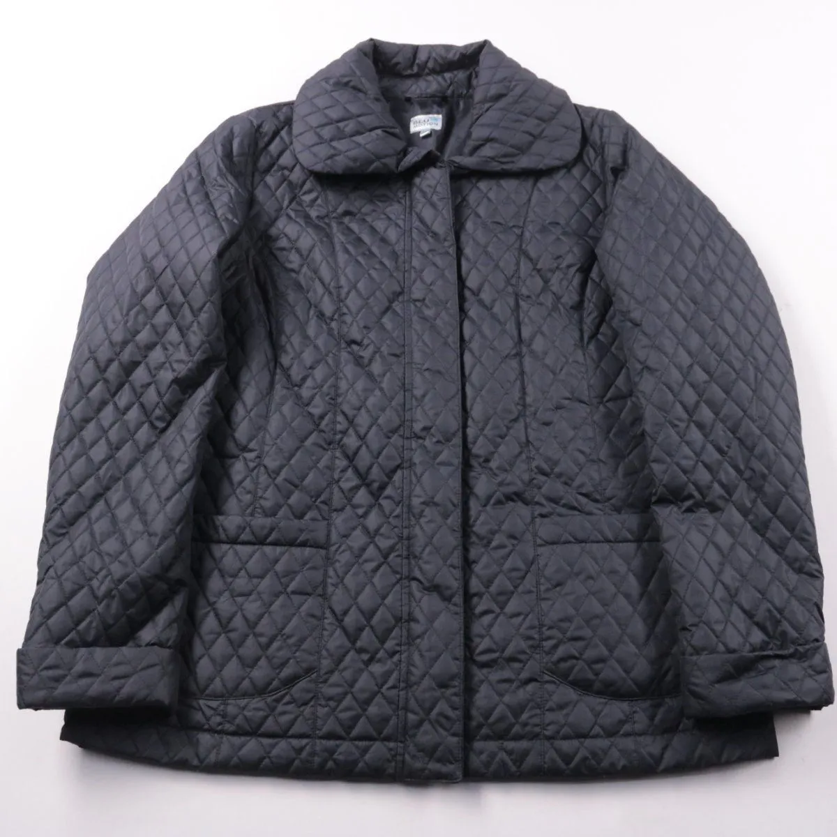 Стёганая демисезонная куртка Blue Motion тёмно-синего цвета с объёмным воротником и накладными карманами. Подойдёт для прохладной весны и осени, удобно носить в городе каждый день. Лёгкая, быстро сохнет и проста в уходе.