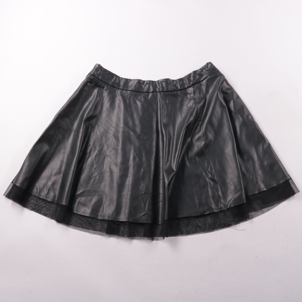 Юбка Shein Curve из гладкого материала под кожу с лёгким клёшем и вставкой из сетки по низу. Подойдёт для повседневных образов и выхода вечером, хорошо сочетается с топами и свитерами. Материал практичный — легко протирается и почти не мнётся.